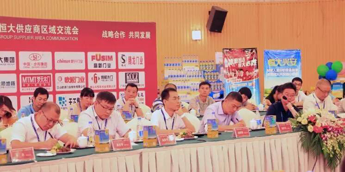 Evergrande Material Company Chairman Yu Weiqiao, Executive Vice General Manager Su Xin, Li Yingxin, Zhang Mingming; Grain and Oil Group leader Qin Liyong; Dairy Group leader Wang Xi and other senior leaders of Evergrande attended the meeting, Qunshang Group Co. Ltd., Foshan Henghe Wood Co., Zhuhai Huahong Wood Co., Huanyu Group Co. Representatives attended the meeting, involving material categories including indoor doors, cables, etc. President Xu Buyun, general manager of interior door sales Liu Binyi, and Chen Yinxu of Evergrande Strategic Cooperation Department warmly received the guests from Evergrande and its partners.